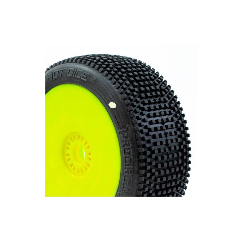 La Hot Dice V2 ofrece a los pilotos seguridad y constancia en circuitos al aire libre con una trazada con algo de tierra y realmente destaca cuando la trazada se empieza a compactar y queda limpia. Este neumático le dará a su buggy tanto velocidad para conseguir buenos tiempos en las mangas clasificatorias como durabilidad para poder hace finales debido a sus buenas características de desgaste.